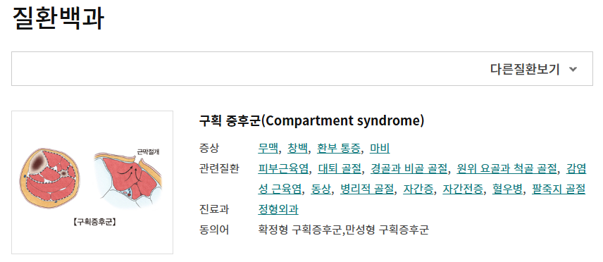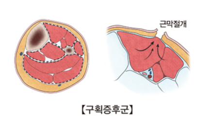 - 치료하지 않을 경우 조직 괴사, 신경 손상, 심한 경우 절단이 필요할 수도 있습니다. 급성 구획증후군은 생명을 위협할 수 있습니다.